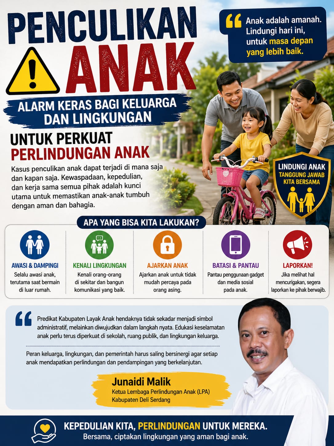 Menanggapi peristiwa ini, Junaidi Malik SH selaku Ketua Lembaga Perlindungan Anak (LPA) Kabupaten Deli Serdang menegaskan bahwa kasus ini bukan sekadar tindak kriminal biasa, melainkan alarm keras atas lemahnya sistem perlindungan anak di tingkat keluarga dan lingkungan sosial.