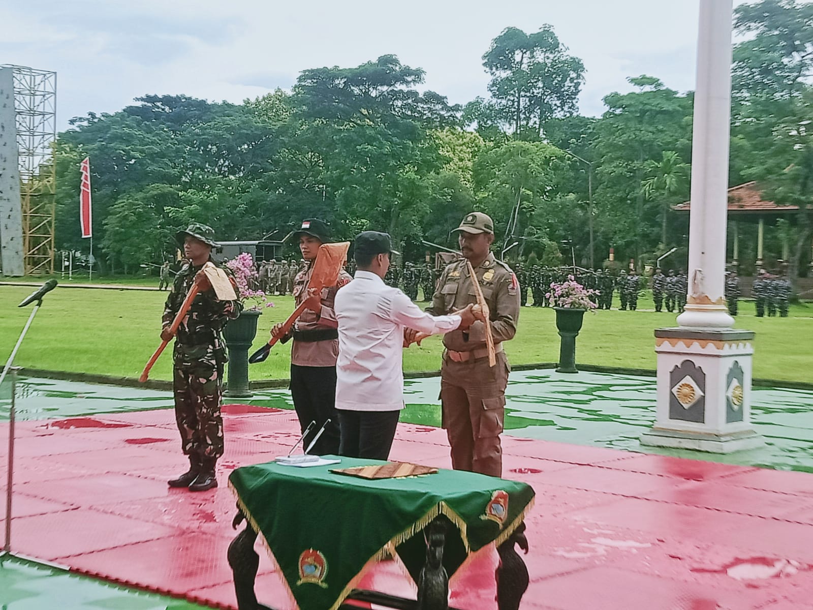 Kegiatan yang mengusung tema “TMMD Satukan Langkah Membangun Negeri Dari Desa” tersebut dipimpin langsung oleh Bupati Bangkalan Lukman Hakim selaku inspektur upacara.