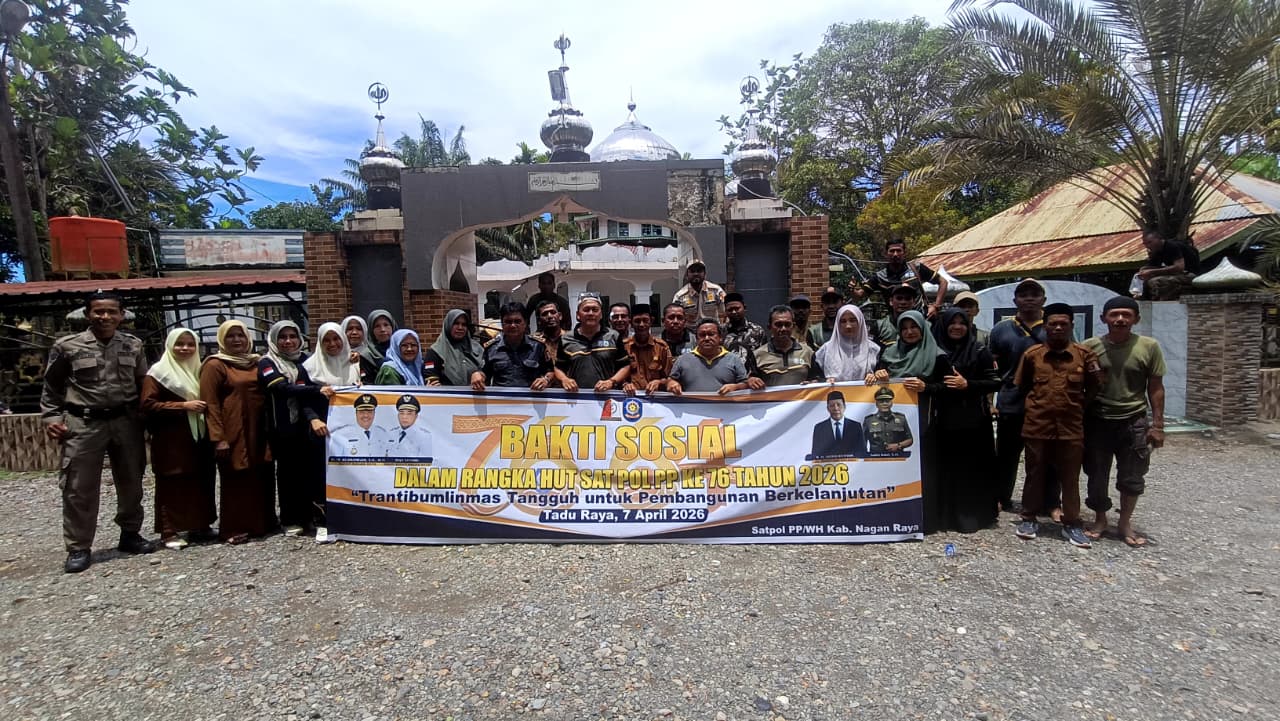Hal tersebut disampaikan Kepala Satpol PP-WH Kabupaten Nagan Raya, Saiful Bahri, S.H., M.H., yang memimpin langsung kegiatan bakti sosial berupa pembersihan Masjid Jamik Kamalul Yaqin, Dusun Bukit Setia, Gampong Babah Dua, Kecamatan Tadu Raya, Selasa (7/4/2026).